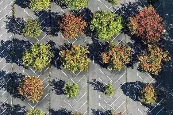 利于更換及修補(bǔ)的防滑鋪裝材料,以及它的透水性,加上鋪設(shè)尺寸符合人體工程學(xué),真是人性、環(huán)保、安全而美觀。而停車場(chǎng)周圍的綠植,起到降溫作用,視覺上也美化了場(chǎng)景,愉悅內(nèi)心,安全出行,再好不過。